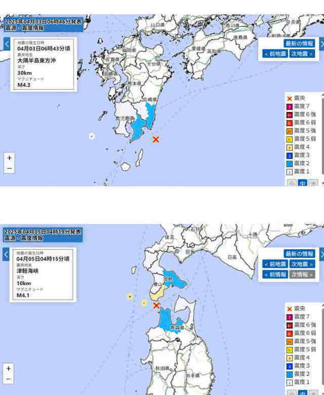 结论:2025年4月(截至13日)日本地震活动呈现“中强分散”特征,未出现7级以上强震或密集余震链。