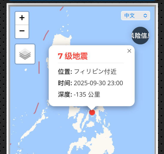 9月30日22:59(东京时间),菲律宾突发6.9级地震。